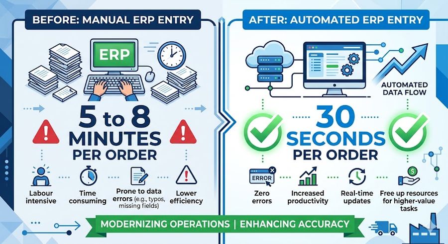 The most common reason distributors give for not automating order entry is not cost. It is complexity. The assumption is that connecting an automation layer to an ERP requires months of IT work, custom development, and a budget that only makes sense for enterprise-scale operations.